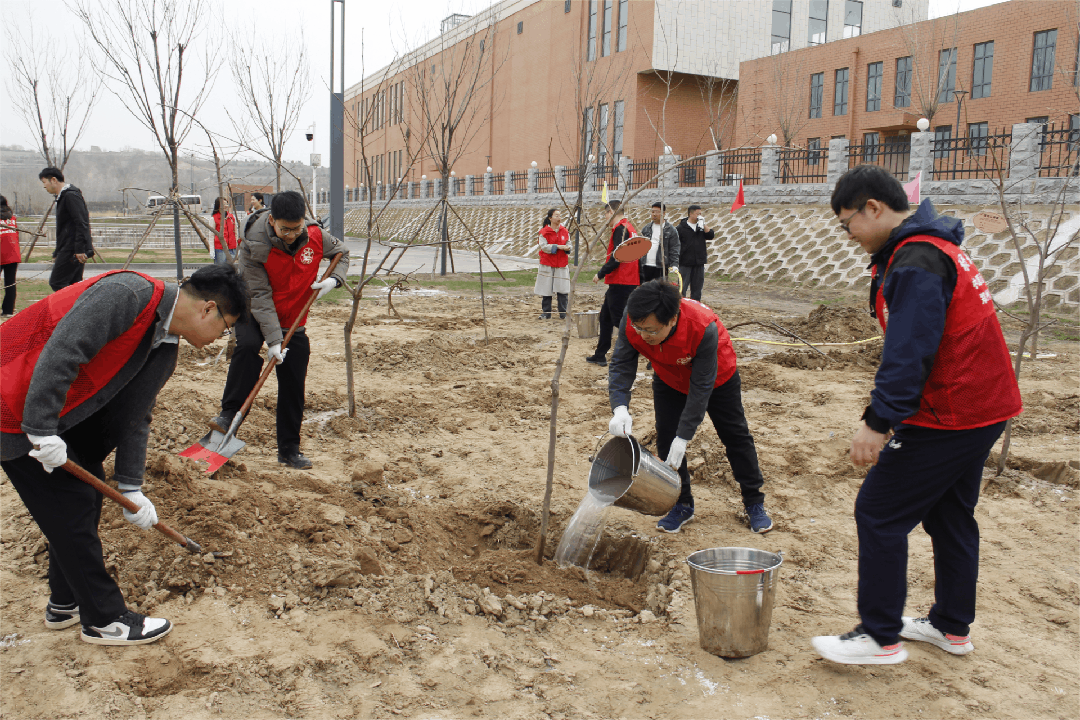活動現(xiàn)場,40余名黨員揮鍬鏟土、扶苗培根、提水澆灌,合力種下百余棵“黨員先鋒樹”,從開挖樹坑到搬運苗木,從培土固根到引水澆灌,現(xiàn)場繁忙而有序,氣氛活潑而熱烈,大家以樹為筆、以汗為墨,寫下“城發(fā)人”的綠色誓言:種一片林,守一脈水,護一城人。種植完成后,大家積極懸掛“樹木認養(yǎng)牌”,標注樹木類別和認養(yǎng)人姓名,讓每一棵樹都成為黃河流域高質(zhì)量發(fā)展的“綠色坐標”,讓每名黨員都成為綠色發(fā)展的“排頭兵”!