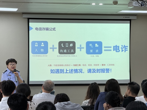 講座最后,李敏警官特別給出防范建議,不輕信陌生來電、不隨意透露個人信息、不隨意轉(zhuǎn)賬匯款。尤其涉及銀行卡、支付寶、微信等金融賬戶操作時,務(wù)必提高警惕。如遇可疑情況,可撥打96110或110咨詢,也可以就近向派出所咨詢。這些關(guān)鍵防范措施,正是守護財產(chǎn)安全的重要保障。
