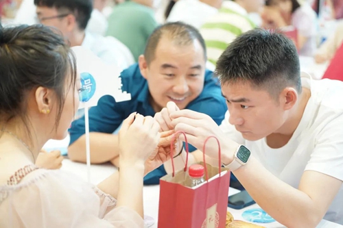 現(xiàn)場有數(shù)對單身男女在活動中互加微信,他們通過這個平臺深入了解彼此,逐漸建立起深厚的感情。