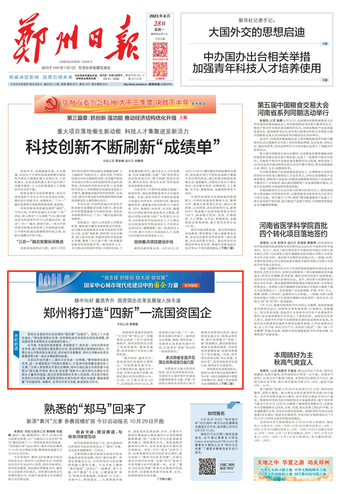 首先,為您推出《穩(wěn)中向好 量質(zhì)齊升 國(guó)資國(guó)企改革發(fā)展駛?cè)肟燔嚨?鄭州將打造“四新”一流國(guó)資國(guó)企》——