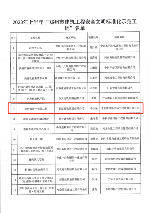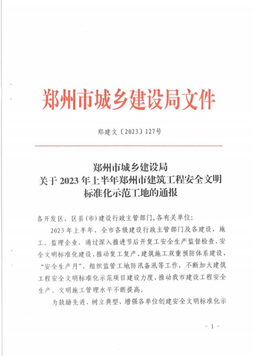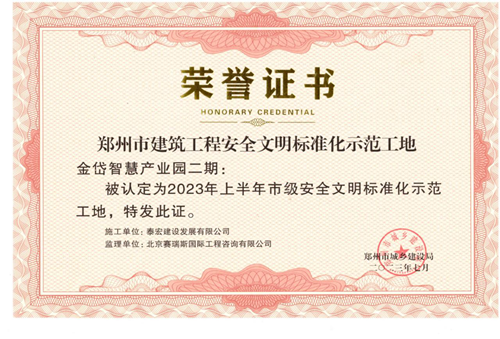 近日,經(jīng)鄭州市城鄉(xiāng)建設(shè)局評選,河南鄭地科創(chuàng)產(chǎn)業(yè)發(fā)展有限公司投資建設(shè)的金岱智慧產(chǎn)業(yè)園二期項目榮獲“2023年上半年鄭州市建筑工程安全文明標(biāo)準(zhǔn)化示范工地”榮譽(yù)稱號。