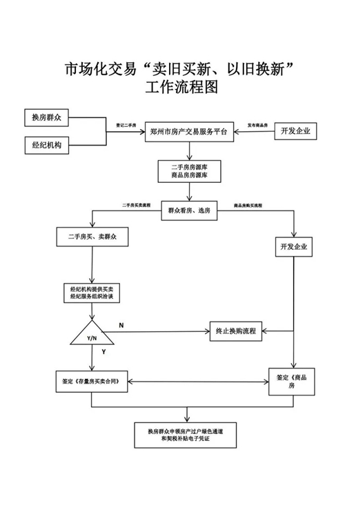 換房群眾可自主選擇通過“鄭州市房產(chǎn)交易服務平臺”或其它渠道掛牌出售二手住房、選購新建商品住房,自由交易實現(xiàn)“賣舊買新、以舊換新”。(二手住房不受城發(fā)安居公司收購條件限制、新建商品住房須位于主城區(qū)范圍內(nèi))