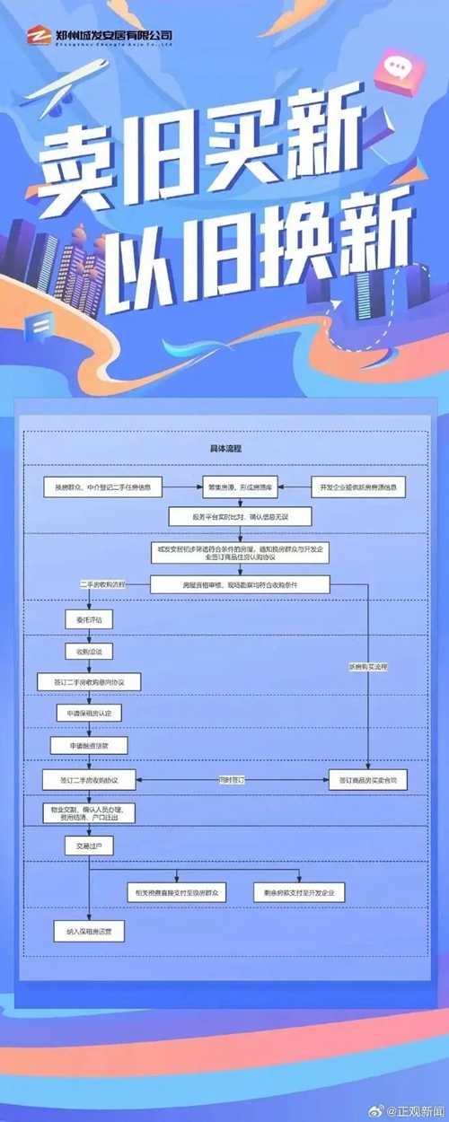 鄭州房產市場“賣舊買新、以舊換新”旨在滿足群眾改善性住房需求。具體來講,由政府指定收購主體—鄭州城市發(fā)展集團有限公司與具有改善需求的換房群眾進行洽談,通過價格評估、銀行貸款等一系列工作流程,收購群眾二手房源,為群眾購買新房提供資金支持,暢通買賣渠道。此外,群眾也可通過市場化方式進行交易。