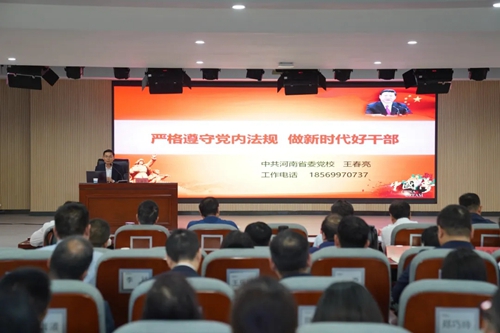 集團(tuán)黨委邀請河南省委黨校中共黨史教研部王春亮副教授,以《嚴(yán)格遵守黨內(nèi)法規(guī) 做新時代好干部》為題展開宣講。王教授分別從紀(jì)律嚴(yán)明是黨的光榮傳統(tǒng)和獨特優(yōu)勢、黨員干部嚴(yán)格遵守黨內(nèi)法規(guī)的迫切性和做嚴(yán)守黨內(nèi)法規(guī)好干部的主要著力點三個方面宣講,號召全體黨員干部要以黨紀(jì)學(xué)習(xí)教育為契機(jī),上好黨性鍛煉“必修課”。