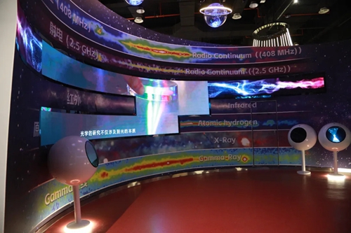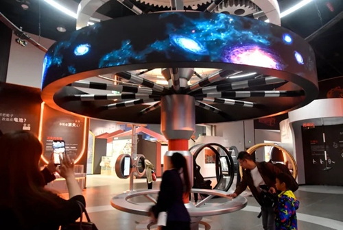 最夢幻的是“追光之旅”展廳。一進(jìn)這個展廳,仿佛能沉浸式體驗(yàn)星際穿越的樂趣。這里打破單純講解理論知識和科學(xué)現(xiàn)象的傳統(tǒng)模式,用講故事的方式串聯(lián)起相關(guān)展項(xiàng),讓整個展廳形成一套完整的故事體系,生動還原了科學(xué)探索的過程。追光之旅的旅程是回答“光是什么?”的過程,在這個過程中我們通過“認(rèn)識光的傳播”“駕馭光的路徑”“探索光的本質(zhì)”“運(yùn)用光的新知”四個分主題帶領(lǐng)觀眾了解光學(xué)的發(fā)展歷程。