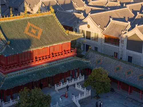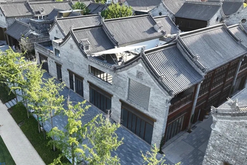 極具傳統(tǒng)特色的院落,是街區(qū)建筑設(shè)計的一大亮點。設(shè)計團隊以河南傳統(tǒng)民居為原型,從建筑形式和整體風(fēng)貌上盡可能保證“原汁原味”。青磚灰瓦,飛檐斗拱,既保留了傳統(tǒng)建筑的韻味,又和街巷動線相通,實現(xiàn)由動到靜的過渡,極大地豐富了空間層次。