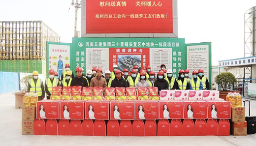 春節(jié)將至,為將工會組織的溫暖及時送到廣大工友手中, 2月7日下午,鄭州市總工會機(jī)關(guān)工會主任王銀倉、副主任張翔宇,鄭州地產(chǎn)集團(tuán)監(jiān)事會主席、工會主席李靜波、女工主任鄭琪在西流湖公司副總經(jīng)理、工會主席昌磊的陪同下,深入中原新區(qū)三十里鋪中安置區(qū)施工現(xiàn)場,開展春節(jié)送溫暖慰問活動。