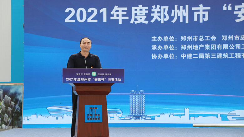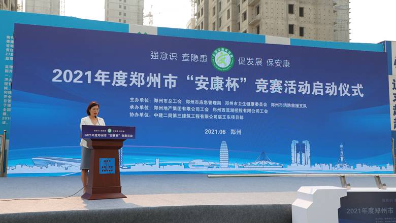 為深入貫徹落實習近平總書記有關(guān)加強安全生產(chǎn)工作的部署和要求,進一步強化各級各部門、各企業(yè)主體的安全責任意識,確保我市安全生產(chǎn)形勢持續(xù)好轉(zhuǎn),職工安全健康不斷鞏固。6月11日上午,由鄭州市總工會、鄭州市應(yīng)急管理局、鄭州市衛(wèi)生健康委員會及鄭州市消防救援支隊主辦,鄭州地產(chǎn)集團工會、鄭州西流湖控股有限公司工會承辦的鄭州市2021年“安康杯”競賽啟動儀式在中原新區(qū)廟王東安置區(qū)項目成功舉行。鄭州市相關(guān)組織部門、市總工會成員單位、地產(chǎn)集團、西流湖公司、各參建單位共200余人參加啟動儀式。鄭州市一級巡視員,市總工會黨組書記、主席趙新中、鄭州市衛(wèi)生健康委員會黨組成員、二級調(diào)研員楊德林、鄭州市應(yīng)急管理局三級調(diào)研員安春茂、鄭州市消防救援支隊副支隊長、滅火救援指揮部部長李隆、鄭州市總工會副主席宋少丹、鄭州地產(chǎn)集團有限公司監(jiān)事會主席、工會主席李靜波、鄭州地產(chǎn)集團西流湖公司黨支部書記、董事長、總經(jīng)理 吉獻亮,中建二局第三建筑工程有限公司西北分公司黨委副書記、執(zhí)行總經(jīng)理趙海軍出席儀式。啟動儀式由市總工會勞動和經(jīng)濟部部長宋慧主持。