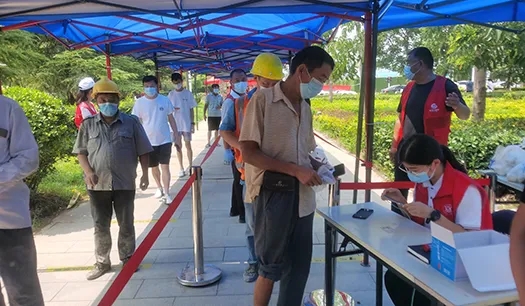 由于龍湖社區(qū)內工地數量多,人員流動性大,檢測人群普遍年齡偏大,給檢測工作著實帶來一定難度。尤其是有一位工友,左腿受傷骨折,打著石膏拄著拐杖來做檢測,他沒有拿身份證且隨行人員都不會熟練操作手機掃碼,但在志愿者的引導下,從帶領他走愛心通道、到協(xié)助錄入信息、幫助他們三人截屏留存以及最終完成檢測,志愿者認真的工作態(tài)度得到了工友和社區(qū)工作者的高度贊揚。檢測期間,志愿小隊統(tǒng)一按照社區(qū)的調度安排,各司其職,專人專崗,一切行動聽指揮,做到了各環(huán)節(jié)專人負責和快速反饋,整體檢測工作快速有序的進行,僅在15日一天,社區(qū)就完成了4000余人次的檢測。來自龍湖社區(qū)的居民表示,第四次核酸檢測相較于前幾次效率明顯提高且秩序良好,從最初的半個小時以上到現在的幾分鐘,這不僅是效率質變,更是廣大一線工作人員的付出心血,大家都非常感謝他們。